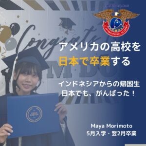 2024年3月27日 / 最終更新日時 : 2024年4月22日 InternationalAJ お知らせ 卒業おめでとう 2023年4月、中学を卒業してAJに入り、一生懸命勉強し・・・ なんとその年の8月に卒業しました。15歳です。 この4月から、ユタ工科大学の授業をオンラインで履修します。 つまり、もう大学生! これからも、一緒にがんばっていきましょう♪