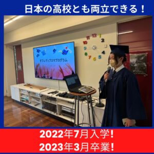 2023年4月24日 / 最終更新日時 : 2023年5月31日 InternationalAJ お知らせ 白鵬女子高校ダブルディプロマ説明会 横浜の白鵬女子高等学校で、ダブルディプロマの説明会を行いました! 日本の高校とアメリカの高校、両方卒業しよう!というもの。 去年の7月に入学し、今年の3月に卒業した宮尾聖苑さん(高3)が、体験談を語ってくれました。 「水球部というきつい部活もやっています。アメリカやタイに短期留学もしました。それでも、隙間時間を使って勉強して、予想よりも早く卒業できました!」と、お話ししてくれました。聖苑さん、ありがとうございました! 「AJのサポートのおかげ」なんて言ってくれて、うれしかったです☆彡